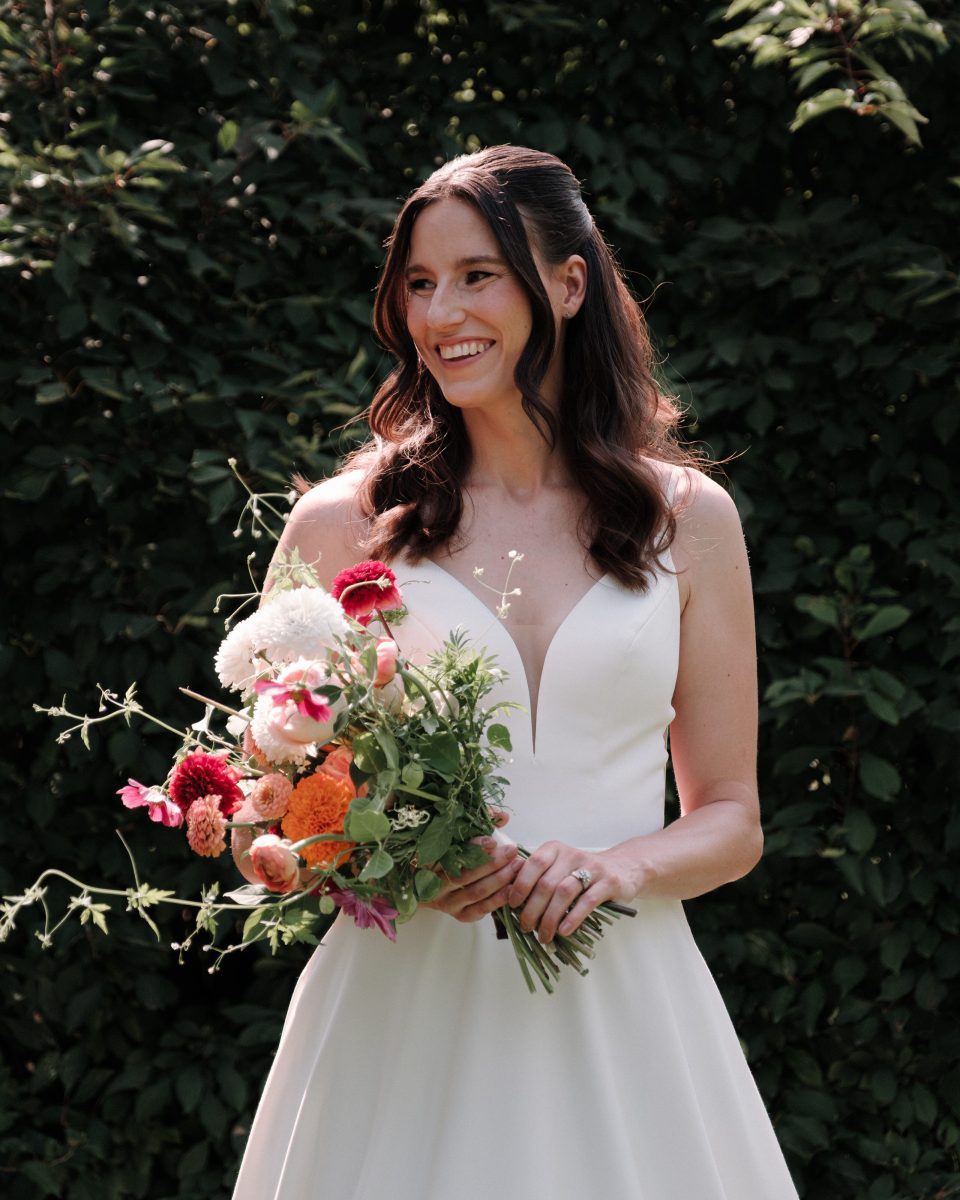Emily wore a stunning gown from Bridals By Al-Mor, paired with hair by Parla Hair and makeup by Rebecca Rose. Meanwhile, Jake wore a custom suit by Surmesure – Toddrick Metzger, adding a classic and tailored feel. Lush arrangements by Sparrow Floral softened the space and added warmth. Then, incredible food and drinks by Parlour brought everyone together. Finally, a beautiful cake from For’Eva Cakes by Alia ended the evening on a thoughtful note.